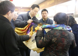 “同在藍天下,共享大地藍”,在一桑一繭、一絲一綢之中,大地藍的師傅們用自己的靈巧雙手,織造了經典的絲綢制品。